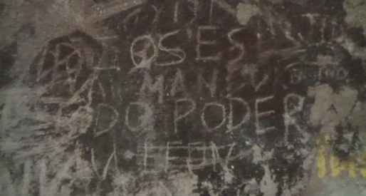 En las paredes del estrecho cuarto en donde apilaban a las personas está el nombre del comandante Omega y en medio de él las letras de las victimas que grababan en su desesperación en la pared en La Gabarra
