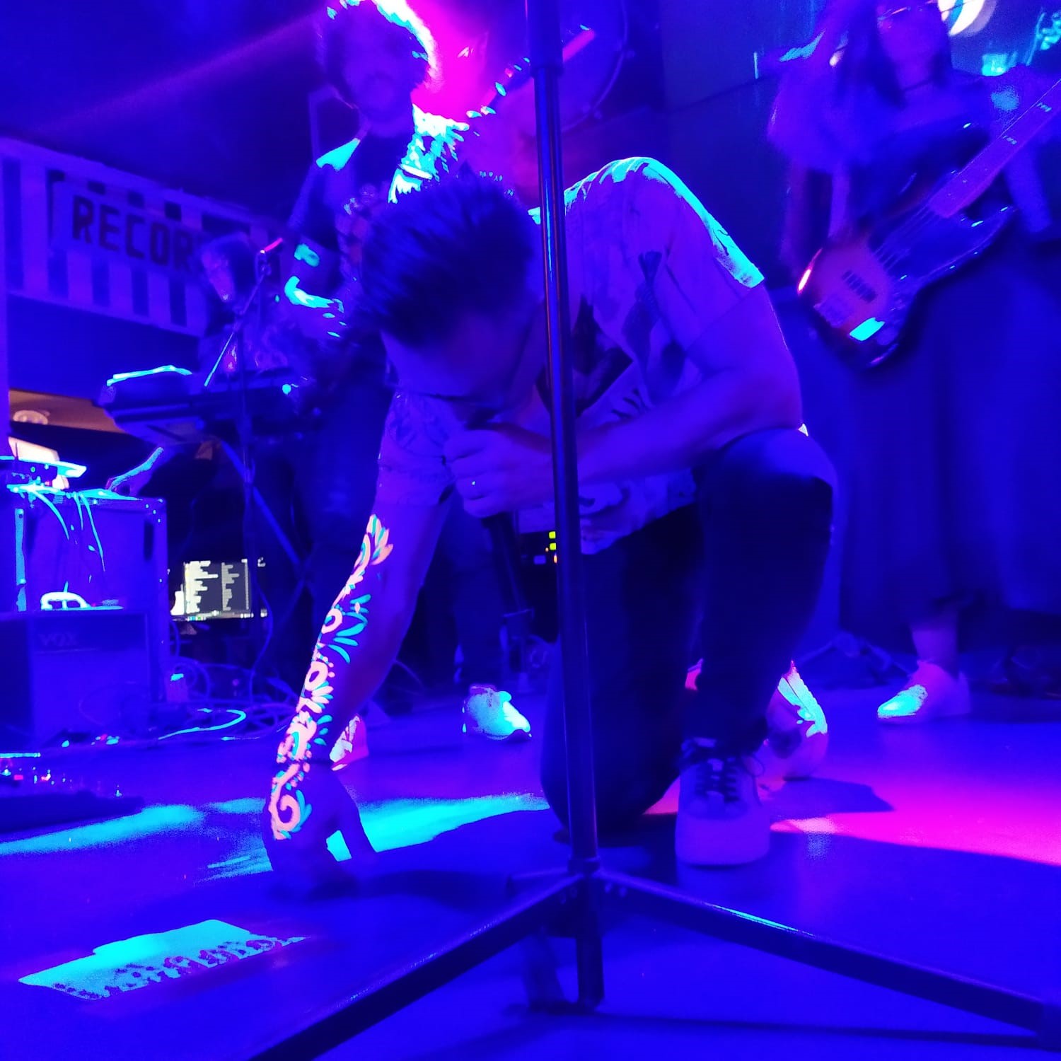 Puntos a favor: tenían material audiovisual para todas las canciones (explosiones, videos originales, videos de stock y hasta paseos siderales). No sé si eran del sitio o de la puesta en escena de la banda, pero las luces eran sencillas y, como un francotirador, directo en el objetivo: bola de espejos para las románticas, tatuajes neón hechos con maquillaje fluorescente que brillaban con la luz azul y UV en tarima y ojo, MAQUILLAJE NEÓN PARA EL PÚBLICO , una interacción que claramente los que fuimos no estábamos esperando y nos hizo sentir parte del show.