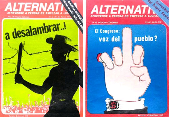 Portadas de la Revista Alternativa, fundada por Gabriel García Márquez y Enrique Santos Calderón, entre otros. Foto: Metaskopia.com