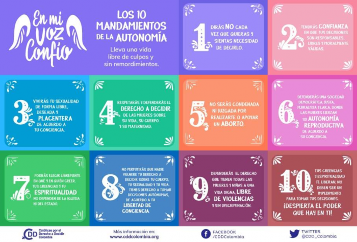 Su defensa del derecho a decidir es desde la doctrina cristina y con base a los preceptos del Derecho Canónico (canon 1323) descubrieron que, aunque el aborto es causal para la excomunión, es decir, para ser expulsadas de la iglesia, también tiene unos atenuantes ante los ojos de Dios aunque los sacerdotes no los apliquen al pie de la letra.