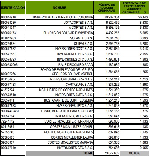 El Grupo Bolívar tienen en su junta directiva, tres miembros patrimoniales: