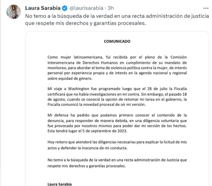 Sarabia comparecerá el próximo 5 de Septiembre acompañada por su abogado Jorge Mario Gómez y de esta diligencia dependerá su futuro inmediato al lado del Presidente Petro o dedicada a defenderse penalmente en el caso de su empleada doméstica Marelbys Mesa