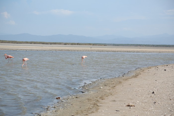 Cuando fui por primera vez a Camarones, encontré un grupo de de más o menos cincuenta flamencos. Uno de los inspectores del parque, el señor Anderson Rosado, me explicó que la población podría llegar hasta los doce mil especímenes, pero que por la época, y las condiciones climáticas, sólo se encontraba ese reducido número.