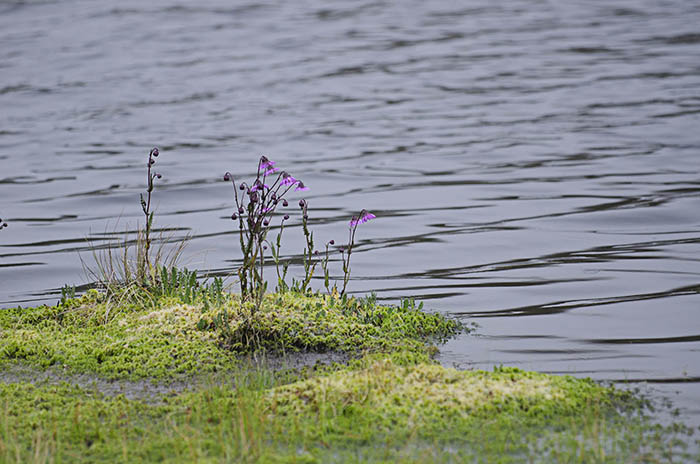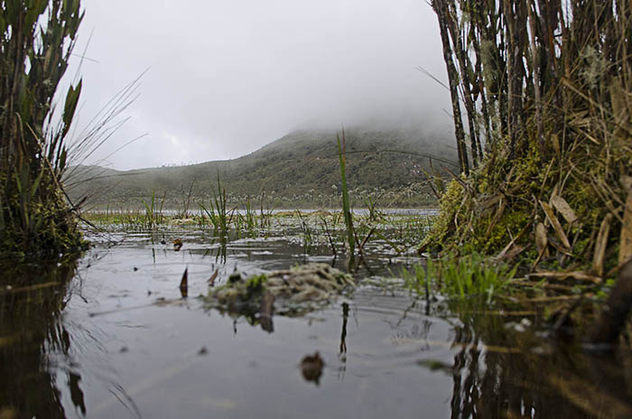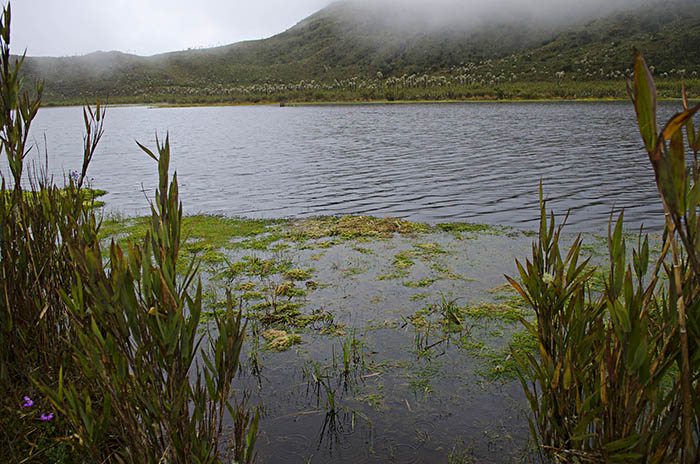 Además de agua, podemos observar líquenes, agraz, uva camarona, frailejones con flores amarillas, bromelias, chusques, árnica y pagodas el alimento del oso de anteojos: le raspan las pullas a las hojas para llegar al centro y comerse una piñita. Queríamos ver un oso, pero no salieron a saludarnos, debemos parecerles bien impertinentes.