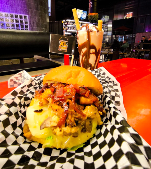 Mi hijo prefirió la "hamburguesa monster", mezcla de carne fina o con filete de pechuga a partir de la talla XL, igualmente queso mozzarella, tomate, cebolla grillé, pollo y carne desmechados glaseados en mermelada de tocineta, lechuga, champiñón y plátano maduro. Aprovechamos para probar los famosos y muy polémicos "falsos chicharrones" que tanto furor causaron en redes; de hecho ahora que se están preparando para participar en un nuevo Burger Master se decantaron por sacar para el evento por la hamburguesa "Cevicharrona", una preparación especial crujiente, mágica y deliciosa que muy seguramente dará de que hablar en esa ya famosa competición. En todo caso, XL Gourmet siempre será un lugar favorito en donde todos los apetitos según la talla, serán bienvenidos.