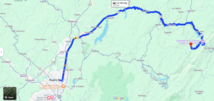 Para llegar a este mágico paraíso desde Bogotá, se empieza tomando la carretera que va hacia Tunja, la capital del Boyacá, pero unos kilómetros más adelante del puente de la represa del Sisga no sigue por la principal, sino toma el desvío a la derecha, rumbo a Machetá.