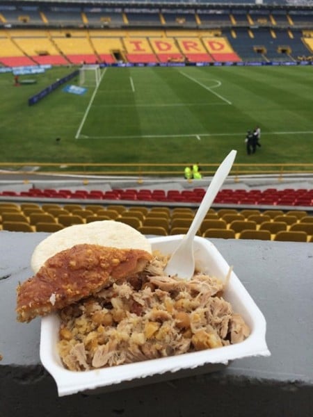 Bogotano que se respete y buen amante del fútbol debe saber que en el Estadio El Campín venden una de las lechonas más populares de Bogotá. La lechona del estadio, preparada en El Lechón de Alberto, es tan fresquita que su carne se puede cortar con un tenedor, y de plástico. Y aunque compite con los palitos de queso, empanadas, perros y sánduches, siempre será el plato más apetecido por los hinchas de la capital. Pero cuidado, es tan buena que muchas veces se acaba antes del final del primer tiempo.