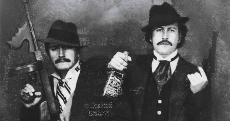 Pablo Escobar y su primo y contador Gustavo Gaviria se disfrazan de gansters de la época de la prohibición.