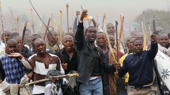 Los mismos empleados de la empresa se han tomado las calles en varias ocasiones para protestar contra los bajos sueldos pagados por las empresas mineras presentes en el país. Una totalidad de 80 mil mineros y socios del Sindicato Minero Nacional (NUM) representaron en su totalidad a 6 empresas mineras en las protestas de 2012. AngloGold Ashanti afirmó que la mayoría de los 35 mil empleados estaban participando en protestas en el mismo año, y como consecuencia tenía que cerrar sus operaciones por un tiempo.