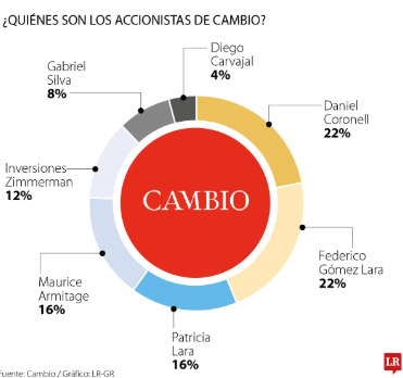 Antes de esta última movida los dos periodistas que además han sido cabezas editoriales del proyecto, Federico Gómez y Daniel Coronell, compartían la misma participación de un 18%, como puede verse en esta grafica elaborada por el periódico La República: