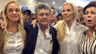 Ramos Allup con las mujeres de la oposición: Lilian Tintori, esposa de Leopoldo López,, Diana D`Agostino, su esposa por 30 años y Mitzy Capriles, esposa de Antonio Ledezma