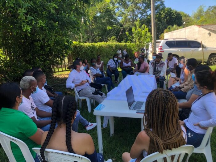 Durante la reunión que se llevó a cabo en Timba, el embajador se sentó a hablar con los jóvenes profesionales del corregimiento y cuyos procesos son asesorados por Carabalí. Foto: Las2Orillas