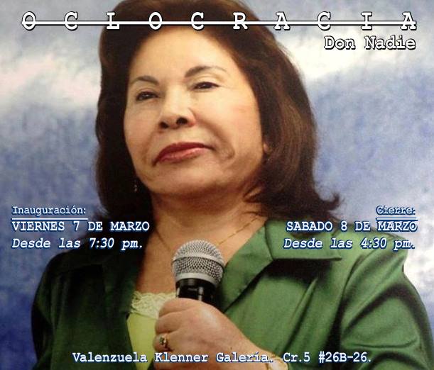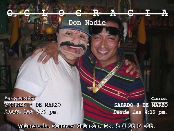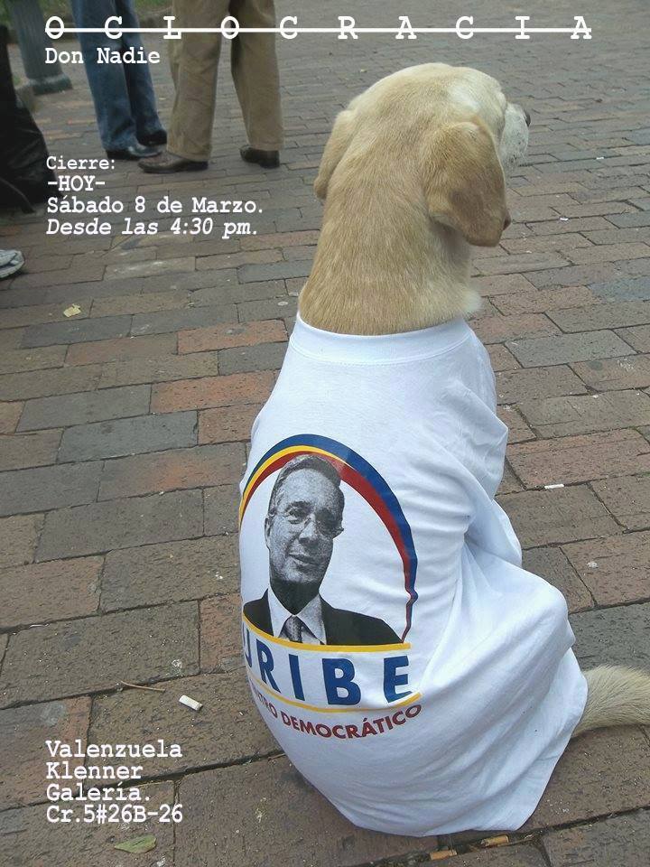 Jorge Sarmiento y Juan Bocanegra, un par de artistas plásticos que cansados del sistema político colombiano presentaron el viernes y sábado antes de las elecciones una propuesta de “cómo votar” para la Cámara y el Senado, en la galería Valenzuela Klenner de Bogotá. Juntos recorrieron las sedes de las distintas campañas políticas recolectando afiches que fueron intervenidos para ser presentados en la exposición Oclocracia en la que se invitó a los asistentes a útilizar su imaginación y creatividad para anular el voto.