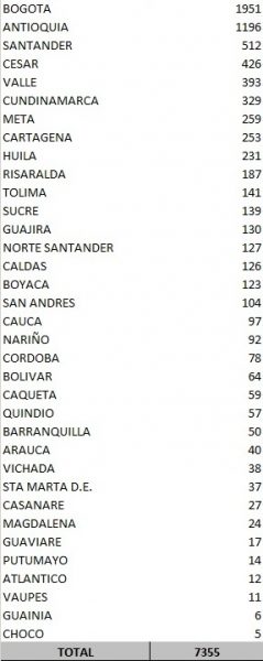 El Ministro de Salud, Fernando Ruiz, confirmó recientemente en su boletín diario que se presentaron 7.355 contagios nuevos de COVID-19. Después de este registro Colombia llega a 92.498 casos activos y a un total de 716.319 casos confirmados. Este es la cifra más alta de personas con el virus desde que inició la pandemia hace casi cinco meses. Los casos se presentaron en: