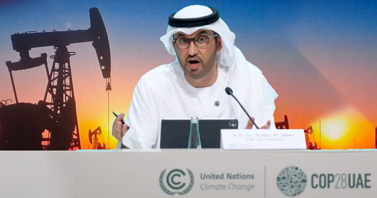 Después de una última maratón de negociaciones, los emiratíes alcanzaron una nuevo borrador que pedía "hacer la transición lejos de los combustibles fósiles en los sistemas energéticos, de manera justa, ordenada y equitativa, acelerando la acción en esta década crucial, con el fin de alcanzar la neutralidad de carbono en 2050 de acuerdo con las recomendaciones científicas". El Ministro de Industria y Tecnología Avanzada de los Emiratos Árabes Unidos y presidente de la COP28 , Sultan Ahmed Al Jaber, asiste a la sesión plenaria, después de que se publicara un borrador de un acuerdo de negociación, en la Conferencia de las Naciones Unidas sobre el Cambio Climático COP28 en Dubai, Emiratos Árabes Unidos, el 13 de diciembre de 2023. © Amr Alfiky / Reuters