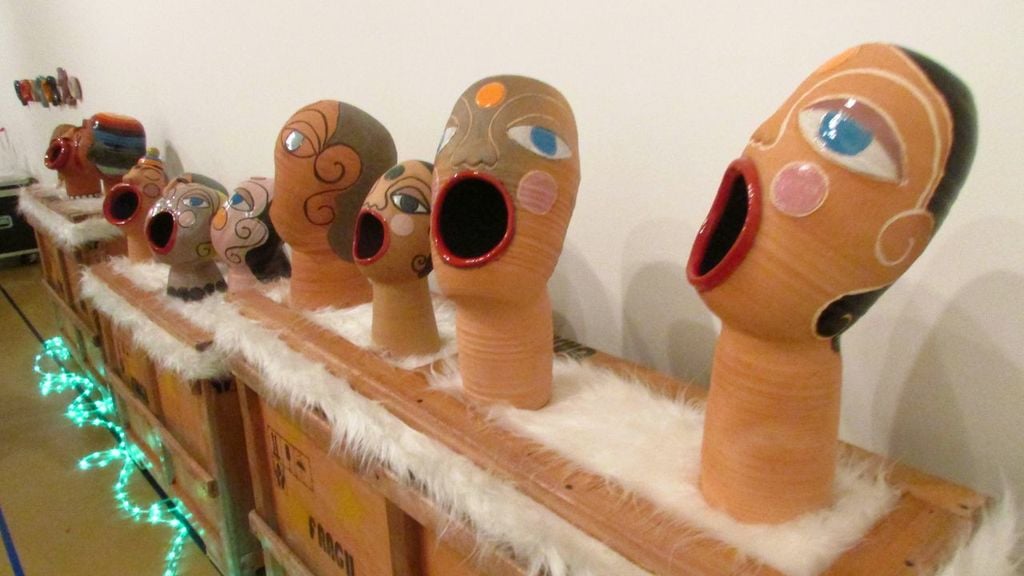 Hasta marzo el Museo de Artes Visuales de la Universidad Jorge Tadeo Lozano de Bogotá estará exhibiendo “Ruiseñora, Fuego y Canto”, una muestra llena de colores, flores naturales,  corazones, calaveras, luces, velas y besos que buscan “bombardeos de amores” y “sonrisas en vez de karate”. Muchas de ellas están compuestas por objetos como bebes y mujeres que dejan ver su faceta de madre feminista.
