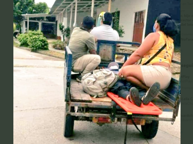 Más de 1.100 infectados convirtieron a Leticia en el lugar de Colombia con más casos por millón de habitantes. Con una población de 49.000 personas ya cuenta con 35 muertos. La preocupación es total porque además los hospitales están saqueados por la corrupción. No hay ambulancias y el comercio con Brasil se ha intensificado: es mucho mejor para un habitante de Leticia comprar un kilo de arroz en Tabatinga, la localidad brasilera que colinda con esa ciudad colombiana, sale la mitad allí que comprarla en las tiendas de la ciudad. El punto es que escenas como esta, la de la foto se repiten a diario. No hay ambulancias, hospitales, solo tristeza y desolación: