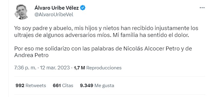 Algo ha cambiado en el expresidente Uribe. Atrás quedó su odio visceral hacia la izquierda. Las reuniones que el Presidente, incluso desde antes de su posesión, muestran una apertura frente a la nueva realidad política del país en la que quien manda el ex guerrillero Gustavo Petro. Mientras medio país aprovecha la ligereza de Nicolás Petro él llama a la calma. Es más se solidariza con los hijos del Presidente.