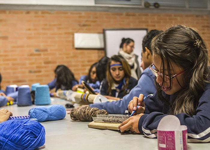 Hilos, agujas y canutillos son las herramientas que usan en un colegio del sur de Bogotá para construir paz