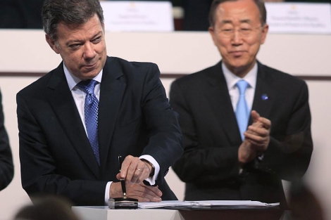 Con Ban-Ki Moon director de la ONU como testigo, el presidente Juan Manuel Santos expide la Ley de Víctimas y Restitución de Tierras. 1400 familias de Libertad, Arroyoseco y Sabanetica logran una reparación colectiva.