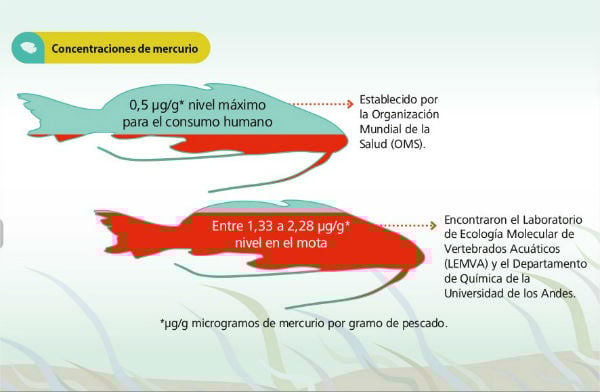 Susana descansa los codos sobre un libro gordo: Introduction to conservation genetics y sin despegar los ojos del computador señala una línea roja. “Según la Organización Mundial de la Salud (OMS) –dice– para que un producto sea apto para el consumo humano debe tener un máximo en mercurio de 0,5 microgramos por gramo (μg/g). Encontramos que las especies de mota examinadas tenían entre 1,33 y 2,28 μg/g”.