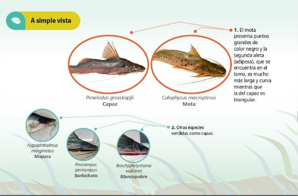 En la plaza, René se mueve como pez en el agua. Todos lo conocen. Ofrece mota con el nombre de capaceta, como los demás comerciantes. Y los clientes, dueños de pesquerías y restaurantes, lo hacen pasar por el capaz del río Magdalena, en donde hace más de 15 años escasea. “Son igualitos, la única diferencia son estas pecas”, dice el vendedor estrella con un silbido al final de cada sílaba.