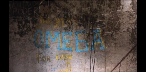 En las paredes del estrecho cuarto en donde apilaban a las personas está el nombre del comandante Omega y en medio de él las letras de las victimas que grababan en su desesperación en la pared en La Gabarra