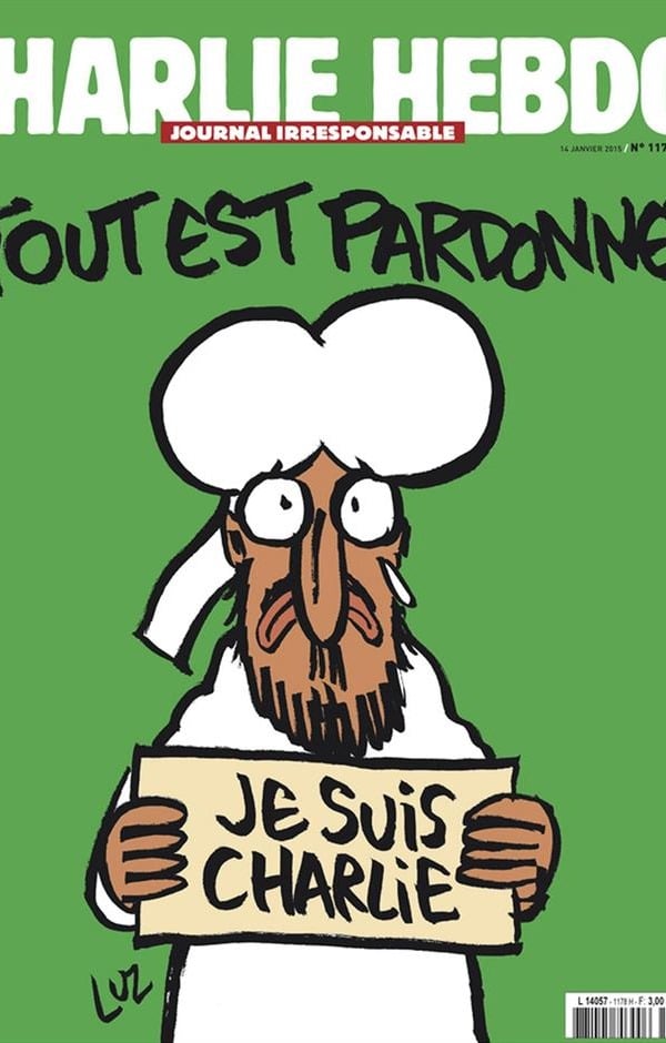 Con esta nueva portada con el título ‘’Todo está perdonado’’ la revista francesa Charlie Hebdo regresa a circulación con tres millones de ejemplares que circulan desde este miércoles. Reaparece la caricatura del profeta Mahoma con lágrimas en los ojos y una pancarta que dice "Je suis Charlie" (Yo sou Charlie). Tras el ataque Yihadista que cegó la vida de diez de sus colaboradores y dos personas más, los trabajadores de la revista sobrevivientes al atentado prepararon esta nueva edición desde la sede del diario Libération y será traducida en 16 idiomas