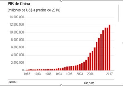 En el año de 1980 China tenía un tamaño de 303.000 millones de dólares, poco menos del actual de Colombia. Mientras que para el 2021 cerraría con un PIB de 16,6 billones de dólares.
