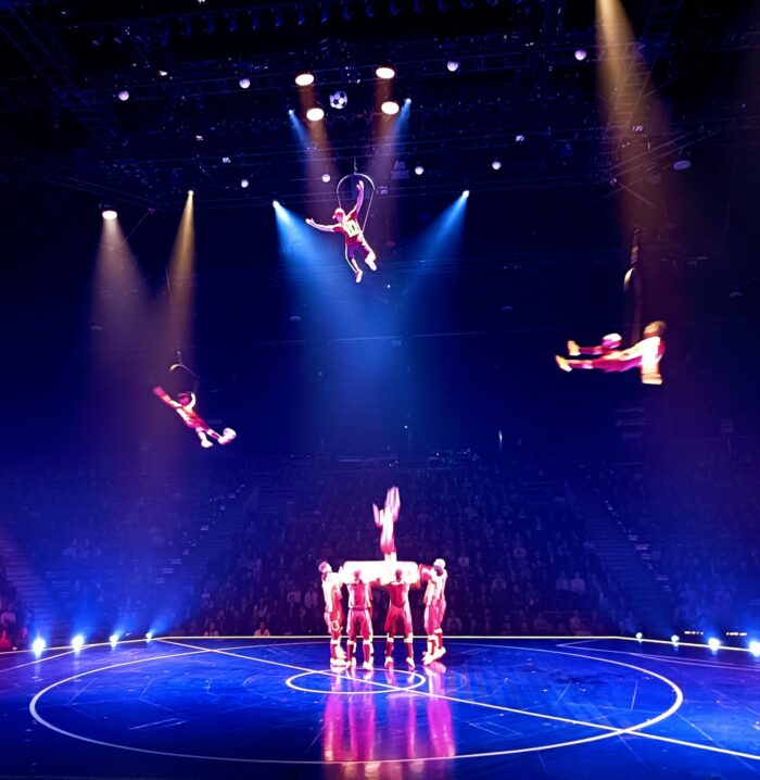Cerca de 40 atletas de alto rendimiento, mujeres y hombres de distintas nacionalidades, algunos con credenciales de los juegos olímpicos, entre malabaristas, trapecistas, equilibristas, contorsionistas, danzantes aéreos, interactúan en perfecta sincronía en todos y cada uno de los números escénicos, con ambiciosas escenografías que van rotando de acuerdo al hilo narrativo.