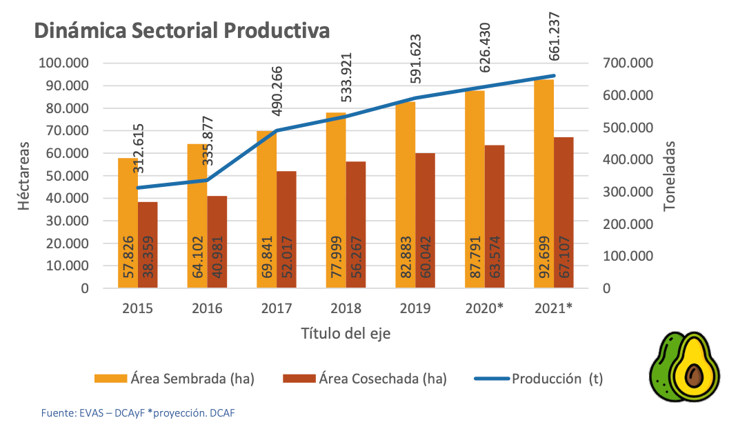 Aunque todavía la productividad colombiana es más baja que en Chile y Perú, y su calidad no iguala la de estos países y México, cada año se incrementa el área sembrada y las toneladas producidas, y se realizan inversiones necesarias para garantizar una producción todo el año y obtener un aguacate de alta calidad.