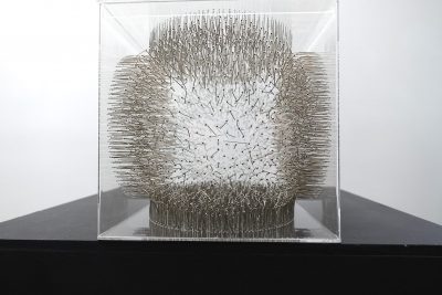 Diana Beltrán expone su obra en la Galería CasaCano. Acá podemos ver un buen trayecto de su obra como fotógrafa que busca la tridimensionalidad mientras alfileres de acero niquelados le otorgan el sentido de profundidad al espacio. O, como ella lo comenta: “busco la expansión del espacio fotográfico”. Con los alfileres que tiene cabecillas, también dibuja caras o sostiene círculos que arma de nuevo para entender otra realidad donde el ojo es su órgano más expresivo y el dolor su mayor preocupación. Además, porque le interesan las dualidades: belleza-dolor o lleno-vacío, colectivo-individual, indiferencia-diferencia, furia-apatía, lápiz-alfiler, línea-sombra.