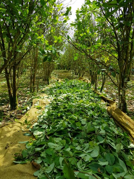 Los raspachines recogen las hojas en un saco colgado en su cuerpo. Cuando se llena, lo descargan en lonas, que después recogen a gran escala - Foto: Juan José Jaramillo