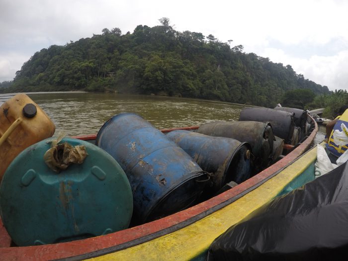 Lancha en el puerto Vallenato, sobre el río Mira, cargada con toneles de gasolina - Foto: Juan José Jaramillo