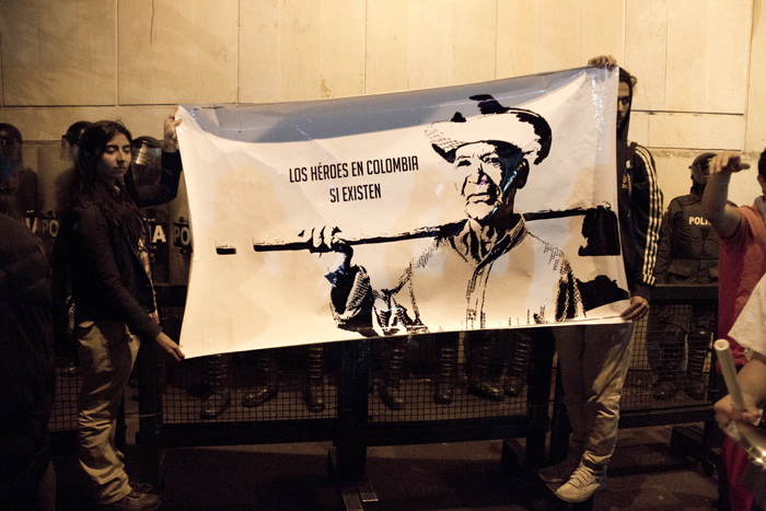Se lo venimos diciendo muy claro al gobierno si usted no está con nosotros entonces nosotros no estaremos con usted. Y construiremos nuestro hogar así sea ilegal hacerlo. O en el cartel de Johana: “Las semillas no tienen dueño”. Nosotros tampoco. Sabemos del riesgo que corremos al reclamar verdadera paz, pero ya no tenemos miedo. Se ha visto cómo el ESMAD hace masacres en el campo, cómo se judicializa en campo alegre a los arroceros por cultivar nuestro alimento. Sí, el suyo y el mío, que ahora no nos vengan a tratar de guerrilleros.