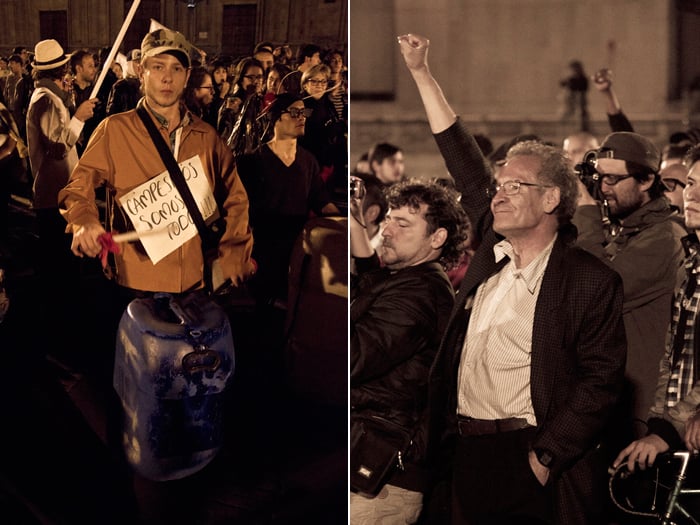!!!!Llegaron las Tanquetas!!!!!! Llegaron las Tanquetas!!!! Me gritaba Jorge al oído, al tiempo que la marea de indignados nos arrastraba hacia ellos. Ellos con las armas, nosotros con el alma. Se escuchaban sin cesar los cantos por más de quinientos años reprimidos, el ta-ka-tá de las ollas y las cucharonas vacías, el silencio en los peones que se abultaban en las esquinas protegiendo el camino al dormitorio de monSantos.