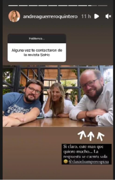 Una de las preguntas que más resaltaron sus seguidores fue cuando habló sobre la propuesta que recibió hace algunos años para posar en la Revista SoHo. "Si claro, este man que quiero mucho, la respuesta se cuenta sola" escribió la periodista sin dar mucho detalle de aquella vez y compartiendo una foto donde señala a Daniel Samper Ospina, quien fue director de la revista hasta el año 2014.