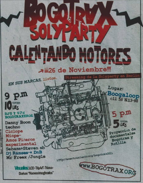 La hora Zanahoría de Mockus llevaba ya dos años y no podría afirmar que esa prohibición creó la escena, eso tenía que reventar por algún lado, pero si le dio un tinte o carácter ilegal, un poco Underground. El promotor u organizador de esas fiestas, Nano Pombo (Q.E.P.D.) las hacía en el norte en restaurantes campestres justo unos metros, casi que centímetros después del límite o frontera de Bogotá, en la séptima como con 230. Ahí la policía no podía decir nada, no era el Distrito Capital donde si aplicaba la hora zanahoria, y en el centro un grupo de Dj´s colombianos y Europeos las hacían en casonas en límites entre la Candelaria y el barrio Egipto, a los tombos les daba pereza pegarse esas trepadas a esas lomas tan bravas a ver que estaba pasando, y si lo hacían, en la entrada les explicaban que era un evento privado. La palabra “Rave” casi no existía, esas rumbas electrónicas se les conocía como “Afters” porque empezaban después de la 1 am, hora de inicio de la prohibición.