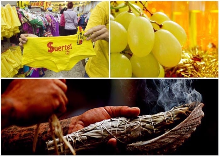 En el último día de diciembre los creyentes recurren a sahumerios, aromas, velaciones, conjuros, cucos amarillos y las doce uvas tragadas aprisa pidiendo un deseo a cada una de las campanadas. En las redes sociales aparecen varios agüeros actualizados, entre ellos uno especial para los políticos que deseen ganar las próximas elecciones: deben despedir este año dándole la vuelta a la manzana con una maleta llena de dinero.