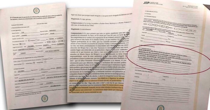 En la segunda página del “Formato para la aportación de información a la matriz de datos sobre la verdad de los autores y conductas relacionadas con el conflicto armado colombiano”, que deben llenar todos aquellos que se acogen a la JEP, el compromiso adquirido por el político conservador está descrito así: “Aportar verdad plena sobre diversos hechos que generaron cientos de víctimas en cuanto a afectaciones a la vida, a la propiedad, a la democracia, a la libertad y a la paz. Hechos en lo que se encuentran actores del Estado, de las Farc, de la delincuencia común como el narcotráfico, las autodefensas y de la política caqueteña. Aportar verdad plena sobre diversos hechos que afectaron la vida de cientos de dirigentes políticos, en especial a miembros de la familia Turbay Cote y otros.
