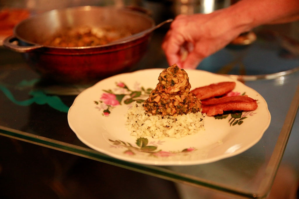 Durante el recorrido llegamos a una pequeña casa azul en donde nos esperaba María Eva Plaza, la representante legal de Asomuja como bien lo dice con orgullo, quien en compañía de su hermana nos presentó un plato típico llamado Zango que solo por su lado ya lleva más de cien años de tradición. “Eso lo cocinaba mi mamá cuando éramos muchachas y ahora que ya estudié, quisimos retomarlo y prepararlo. Es hecho con amor y esperamos que les guste. Consiste en maíz, pescado o lo que quiera echarle: carne, camarón, lo que quiera. Tiene todo el aliño que se le echa a un sancocho, cebolla, pimentón, zanahoria y hierbas. De todo pero sobretodo amor. ¿Sirve para una ocasión especial? Pues mi mamá nos lo cocinaba pero no muy seguido, entonces sí. Pruébenlo que solo se sabe probando”. No muy explícita en la preparación del plato, Eva