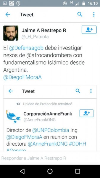 Los reiterados señalamientos vía redes sociales del abogado Jaime Restrepo (foto) @_El_Patriota y del twitero Andrés Felipe Arcos contra la presidenta de la ONG Anne Frank, Claudia Quintero, a quien acusan de tener nexos con el fundamentalismo islámico les costó una demanda no solo por injuria sino por apología al delito, un crimen con alta connotación penal en Colombia y en todo el mundo.