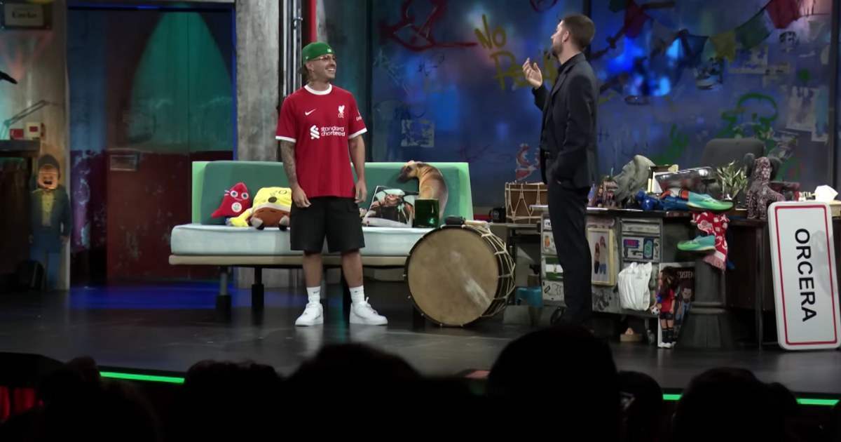 Pero en la charla también hubo un momento para que el hablara de la camiseta del Liverpool que llevaba puesta, de que esta estaba firmada por el nuevo astro del futbol colombiano y para que Feid pidiera en el programa que esto pase pronto.