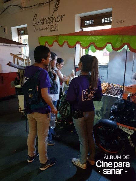 La proyección de El Silencio de los Fusiles en Popayán ha sido una de las más grandes que hemos realizado en 2018. En la plaza había más de 400 espectadores atentos al documental. La recepción de los payaneses fue motivo de celebración para el equipo de Cine para Sanar, que se escapó durante unos minutos de la proyección para disfrutar de papas criollas, salchichas y pinchos en un puesto al pie de la plaza.
