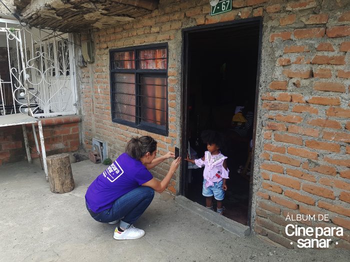 Después de un delicioso sancocho, cuando todo el equipo estaba montado en la van para dirigirnos hacia la plaza central de Guachené, Natalia, fundadora de Cine para Sanar, no aguantó las ganas de bajarse del carro y tomarle una foto a esta pequeña. Durante el almuerzo le había dado pena acercarse a nosotros, pero se mostró valiente frente a la cámara y segundos después de tomar esta foto dejó salir una pequeña sonrisa.