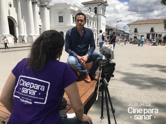El segundo semestre del año fuimos muy afortunados de trabajar de la mano con el Instituto Holandés para la Democracia Multipartidaria (NIMD) en Colombia. Gracias a esta alianza, Cine para Sanar participó en la inauguración de 4 de las 8 Escuelas de Formación para la Democracia que tiene el NIMD alrededor de Colombia con la proyección de El Silencio de los Fusiles y nuestro taller en comunicación asertiva y noviolenta inspirado en el documental. Aquí, Natalia entrevistando a Andrés Saénz, Director del Proyecto Acción Democrática para la Paz de NIMD Colombia.