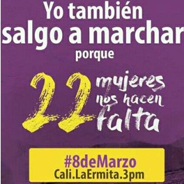 Por eso este 8 de marzo, las mujeres de Cali nos sumamos a la marcha milenaria de las que nos antecedieron, nos reconocemos del linaje de las cimarronas, de las sufragistas, de las chamanas, de las yerbateras, de las abortistas, de las poderosas transformadoras de historias. Nuestra proclama para este 8 de marzo, nos reafirma: