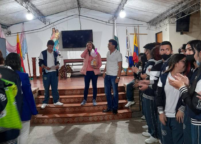 Desde el aula múltiple de la I. E. María Josefa Marulanda, en un pedacito del corazón cejeño del departamento de Antioquia (Colombia), los estudiantes de la generación 18 Once 2022, con sentimientos encontrados, se reunieron en hermandad, con las directoras de grupo Martha Luz, Adriana y el señor Óscar Álvaro Echavarría Ordóñez, rector de la institución educativa, para despedir con gesto de gratitud a la maestra Natalie Rojas, que próximamente viajaría a tierras del departamento del Meta, al oriente del país, para continuar con su hermosa misión de docente.