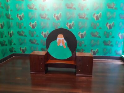 En ese momento Beatriz González decía: “Me siento bien, muy vinculada a la historia de una provincia, y no a las satisfacciones universales en la búsqueda de una verdad de los artistas internacionales”. Así cambió la tela y el óleo por la pintura comercial y la lata de los muebles populares que encontraba en el pasaje Rivas un lugar céntrico en Bogotá donde se venden cosas usadas. Y de allí comenzaron sus cunas y muebles. Y su cambio radical de las técnicas.