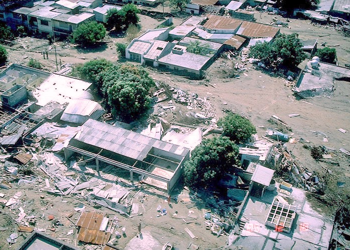 ¿Cuántos atardeceres disfrutó esta plancha con soles especializados en broncear y de apaciguadas charlas en mecedoras? Difícil saberlo, pero esa terrible noche sirvió de lancha para decenas de habitantes, muchos de ellos ayudados por Mario. Esa azotea que por mucho tiempo sirvió de cima de la cuadra pareció contagiarse del berrinche de la gran cima volcánica y desfalleció. Una explicación menos metafórica y coherente se relaciona con el sobrepeso al que fue obligada. Grietas y crujidos del cemento, y la lancha se abrió en dos como el mar Rojo, pero, esta vez, todos fueron a parar al agua.